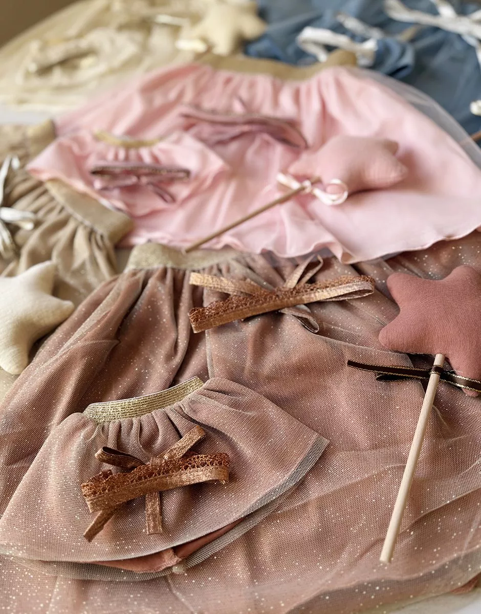 Duo de tutus Deva enfant/poupée et sa baguette magique Minikane avec étoile en tissu cassonade
