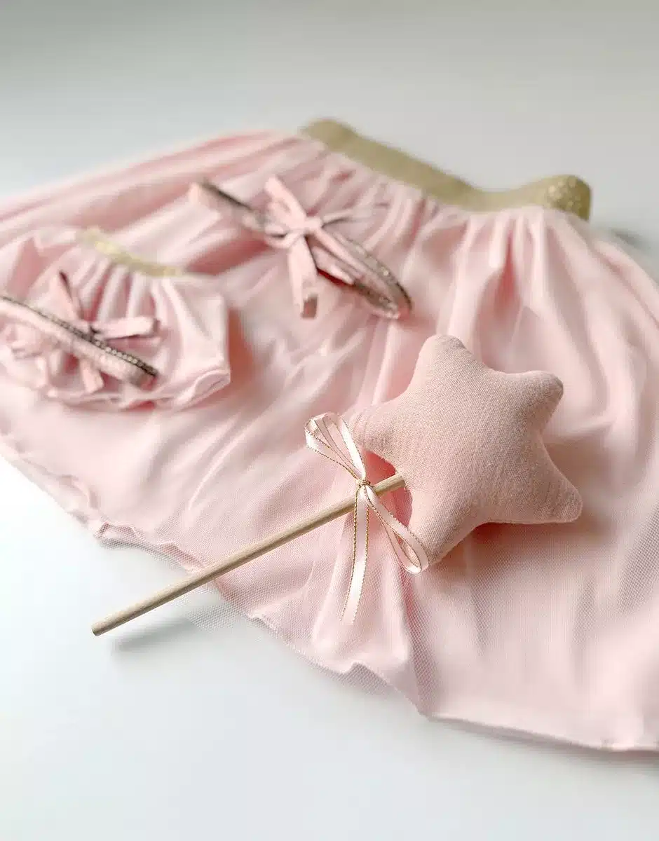 Minikane Duo de tutus Deva enfant/poupée et sa baguette magique avec étoile en tissu Rose