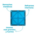 Este pack de baldosas imantadas Imanix incluye 110 piezas de 7 colores y 3 formas diferentes de medidas diversas. Están fabricadas con plástico ABS no tóxico y libre de BPA, látex y tolueno. Son piezas translúcidas, resistentes y de color intenso, además están reforzadas con remaches fuertes que evitan que las piezas se abran.