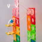 Une las piezas a presión. Conecta sus bloques geométricos de diferentes tamaños, colores y curvos, que permiten la construcción en 2D y 3D por donde después rueda la pelotita que viene incluida  Es posible armar un circuito ¡divertidísimo!