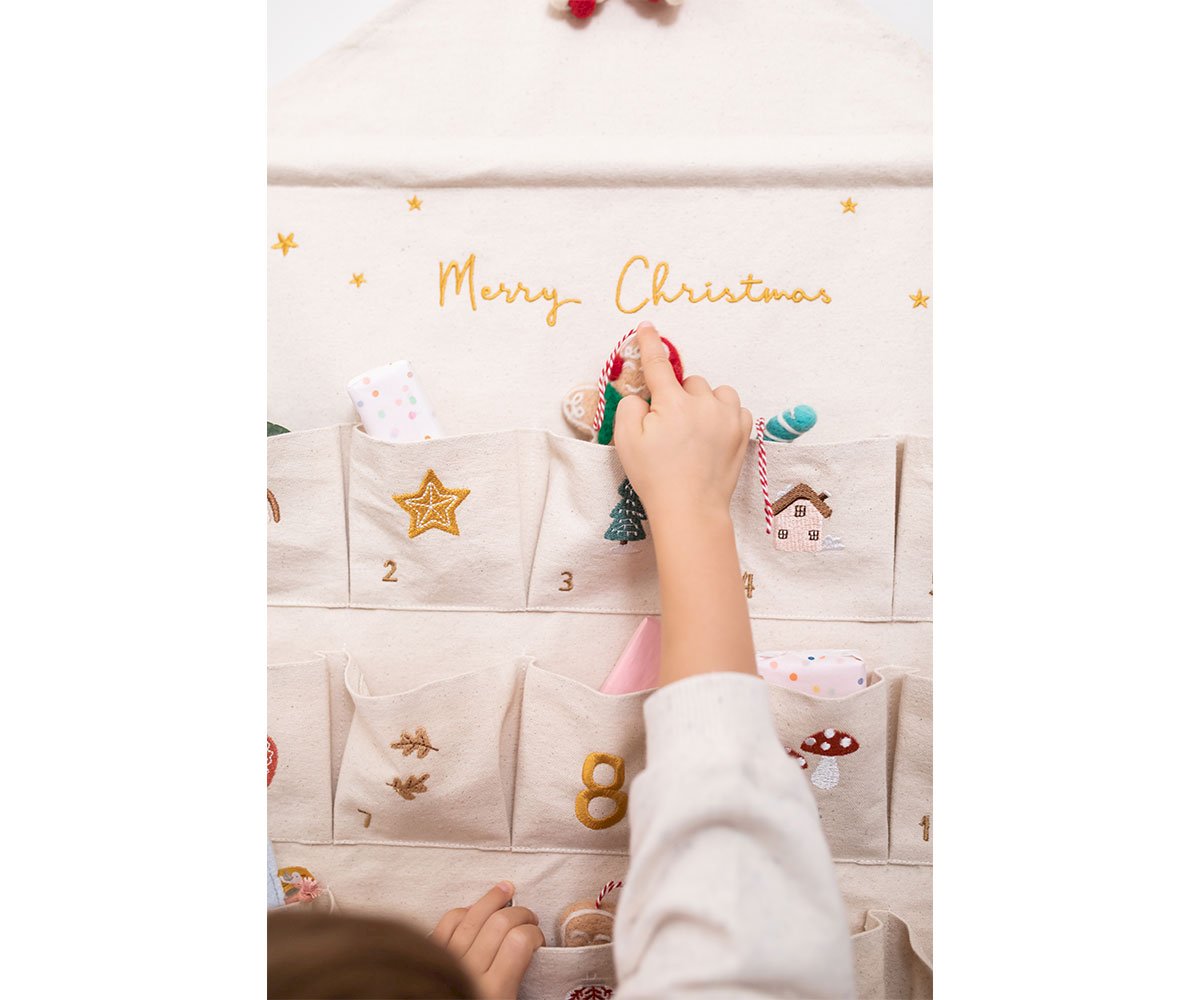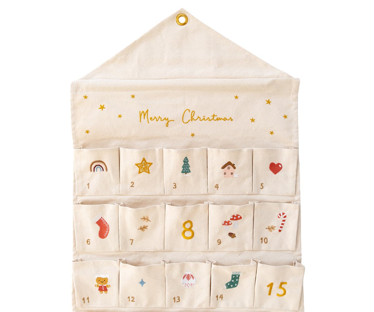 La cuenta regresiva hasta Navidad será muy divertida, emocionante y mágica con el calendario de adviento con bolsillos bordados, numerados y finamente cuidados.