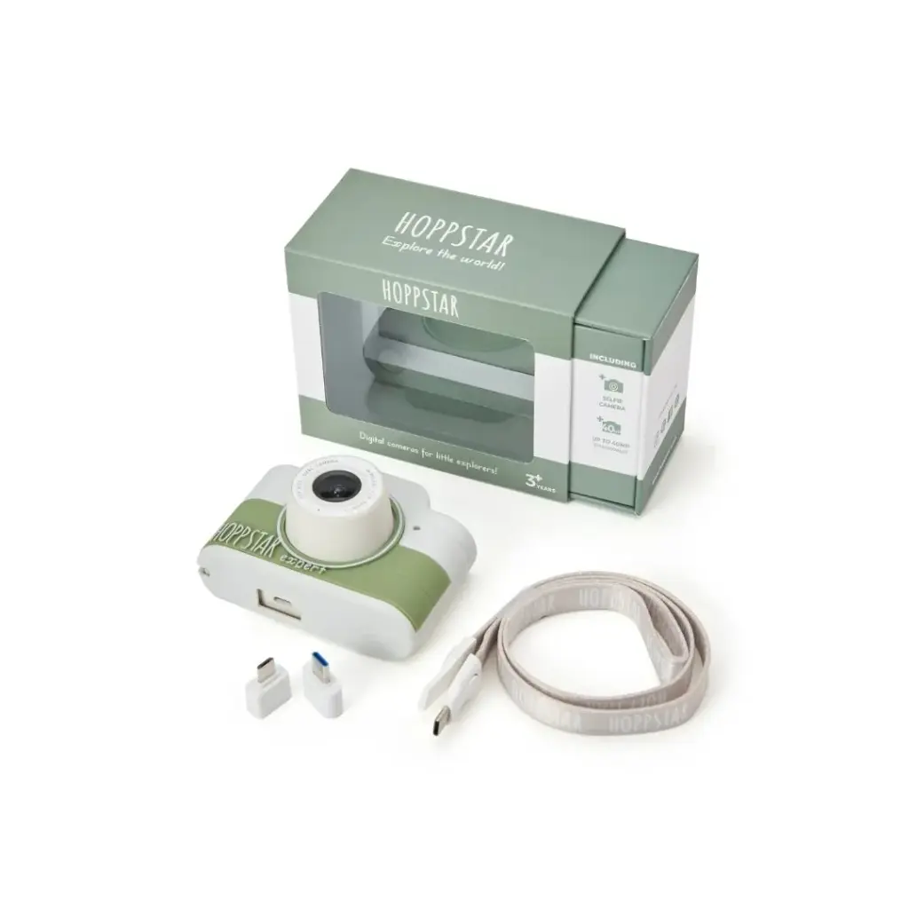 Cámara Digital Hoppstar Expert es la cámara ideal para niños con todas las funciones que necesitas en la vida cotidiana. Con una cámara para selfies adicional en la parte posterior, 16 GB de espacio de almacenamiento para hasta 8,000 fotos y una función de cámara de video. También está equipada con un menú fácil de usar y fundas de silicona intercambiables que protegen contra roturas.