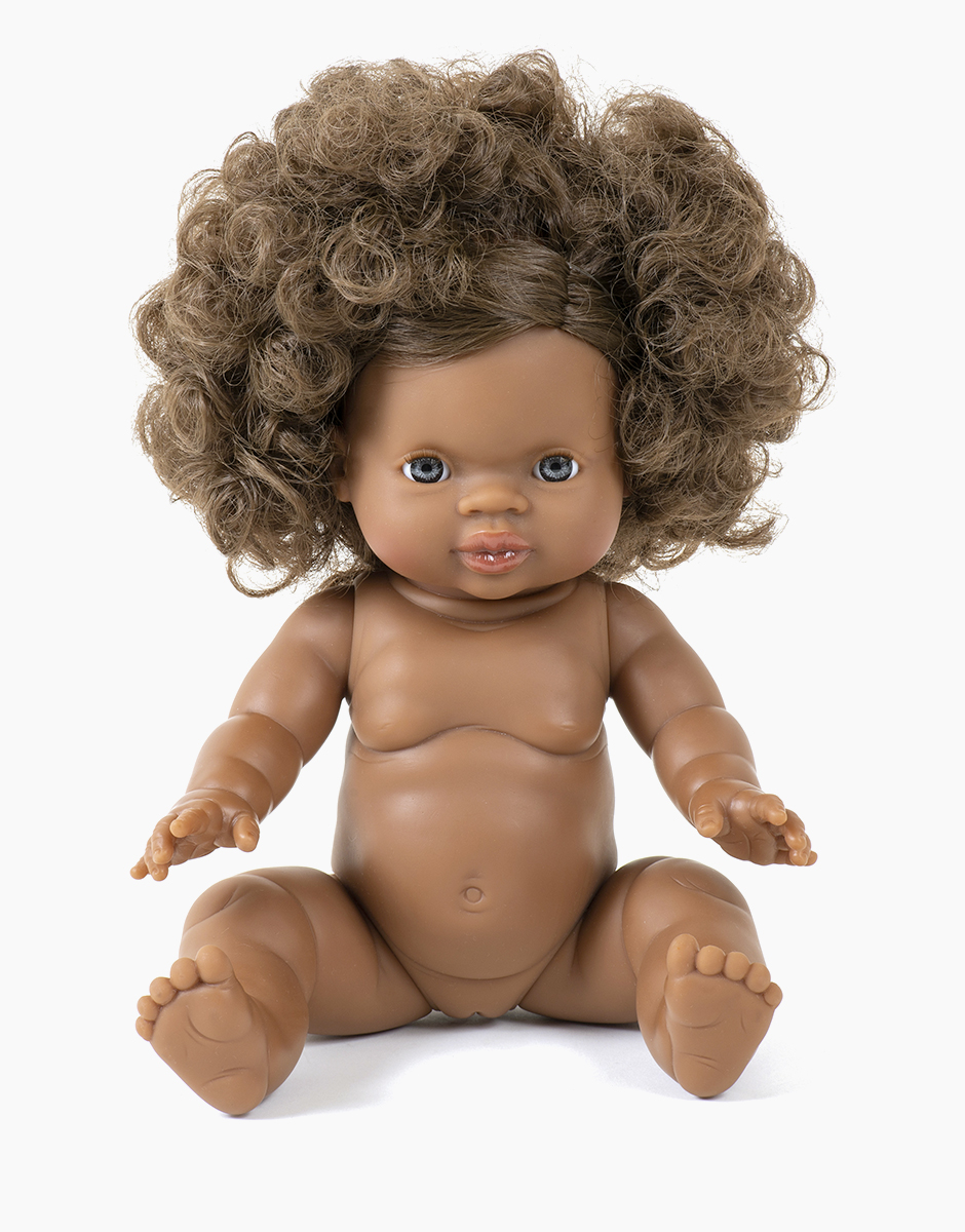• Muñeca de vinilo con pelo y flequillo, con aroma a vainilla.