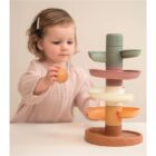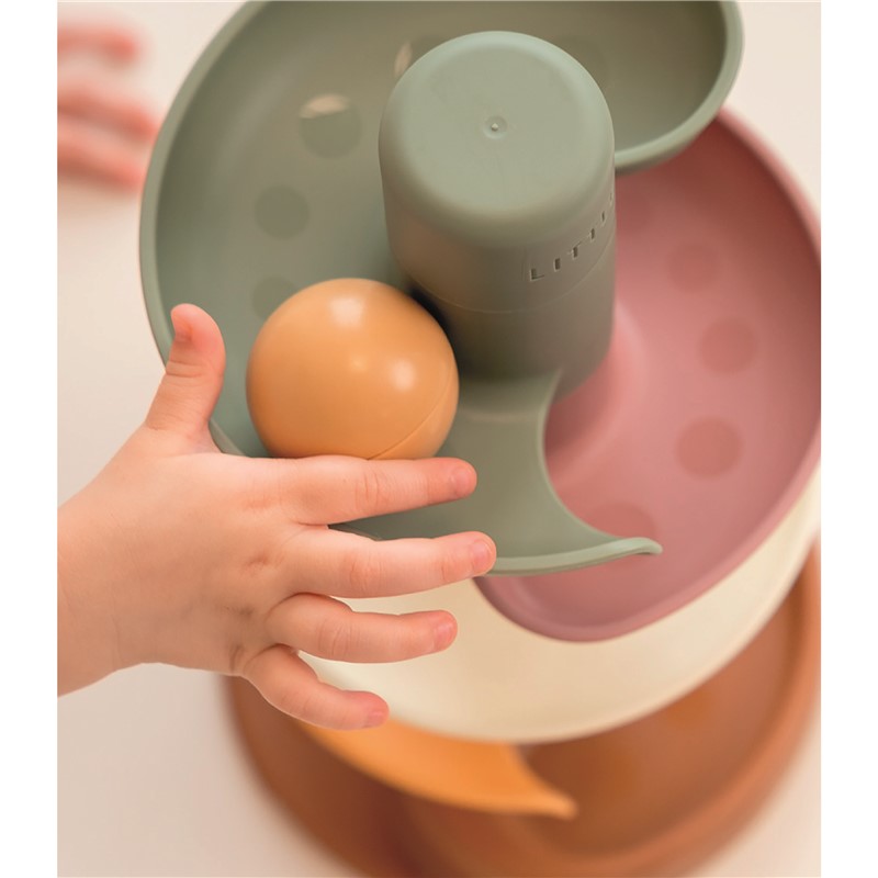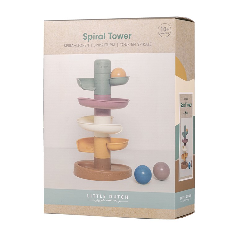 ¡Empecemos a rodar la pelota! Esta cautivadora Torre Espiral genera una emoción infinita. El colorido juguete consta de 5 piezas de tonos vintage que tu peque puede apilar fácilmente. Deja caer las bolas una por una en el nivel superior y mira como ruedan hacia abajo.