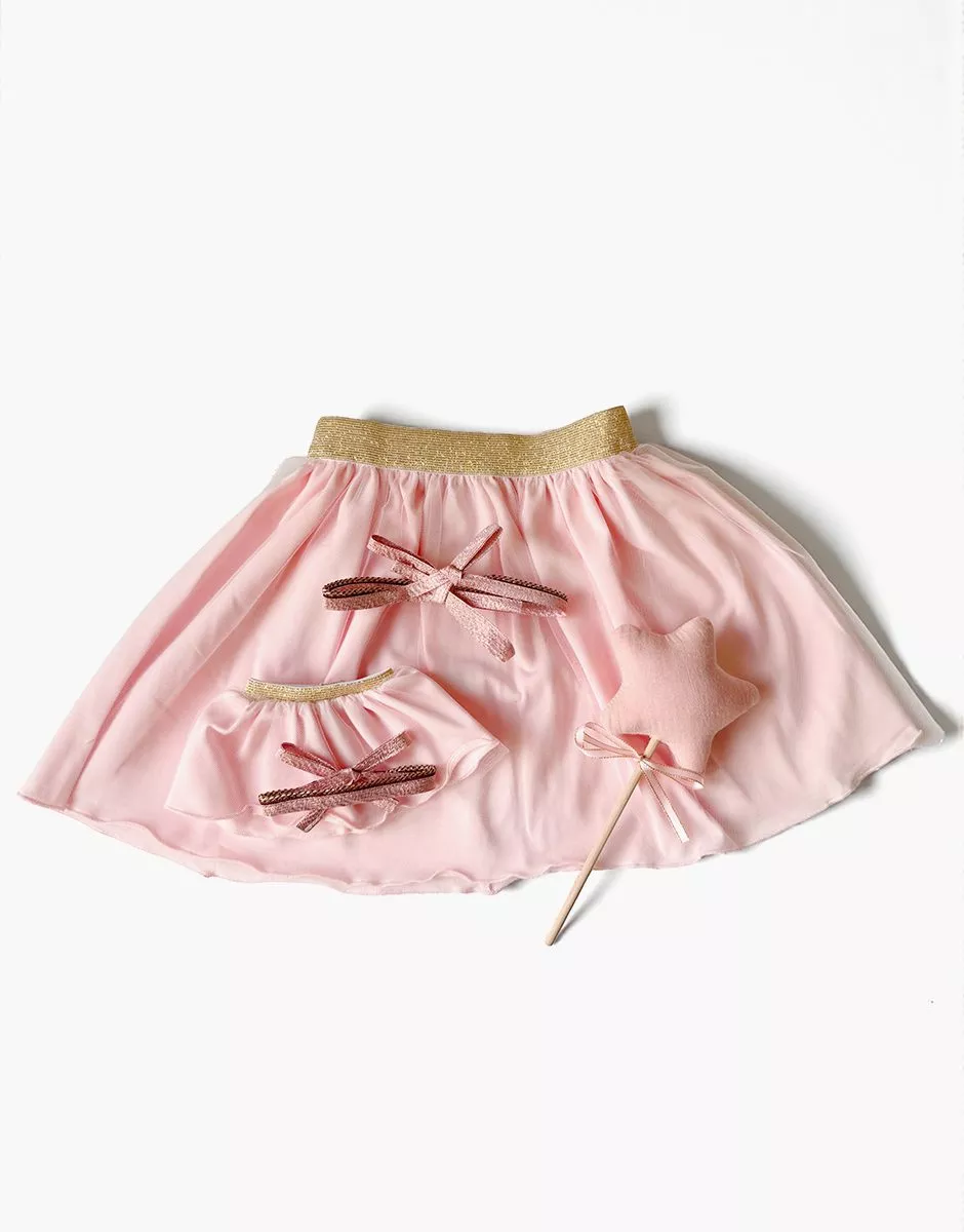Minikane Duo de tutus Deva enfant/poupée et sa baguette magique avec étoile en tissu Rose