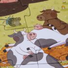 Un puzzle de animales de granja de 36 piezas con caja en forma de tractor que incluye un juego de observación de 40 fichas para mirar, buscar, imaginar y divertirse.