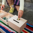 Una caja mágica para encajar piezas, coleccionar, atesorar o intercambiar. Permite a los bebés y niños pequeños explorar por sí mismos a través de todas sus fases de aprendizaje. La caja está pensada para formar el conocimiento en torno al principio de permanencia, pero es un gran complemento para el juego simbólico para encajar, clasificar, combinar colores y… ¡un sinfín de posibilidades más por descubrir!