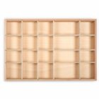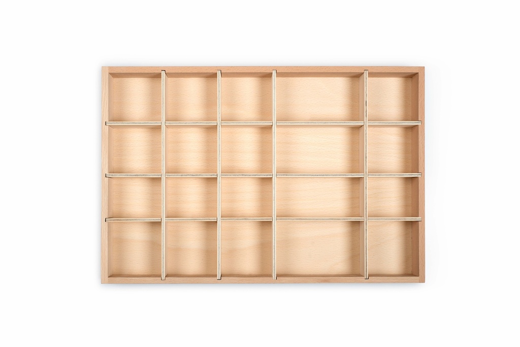 Según Reggio Emilia, el orden y la belleza son fundamentales porque cuando el material está organizado, invita y genera momentos de juego de calidad. Esta bandeja con separadores permite ofrecer una gran variedad de materiales al mismo tiempo. Los compartimentos contienen y limitan y así los niños pueden ordenar y clasificar todos aquellos pequeños elementos que forman parte de su entorno.