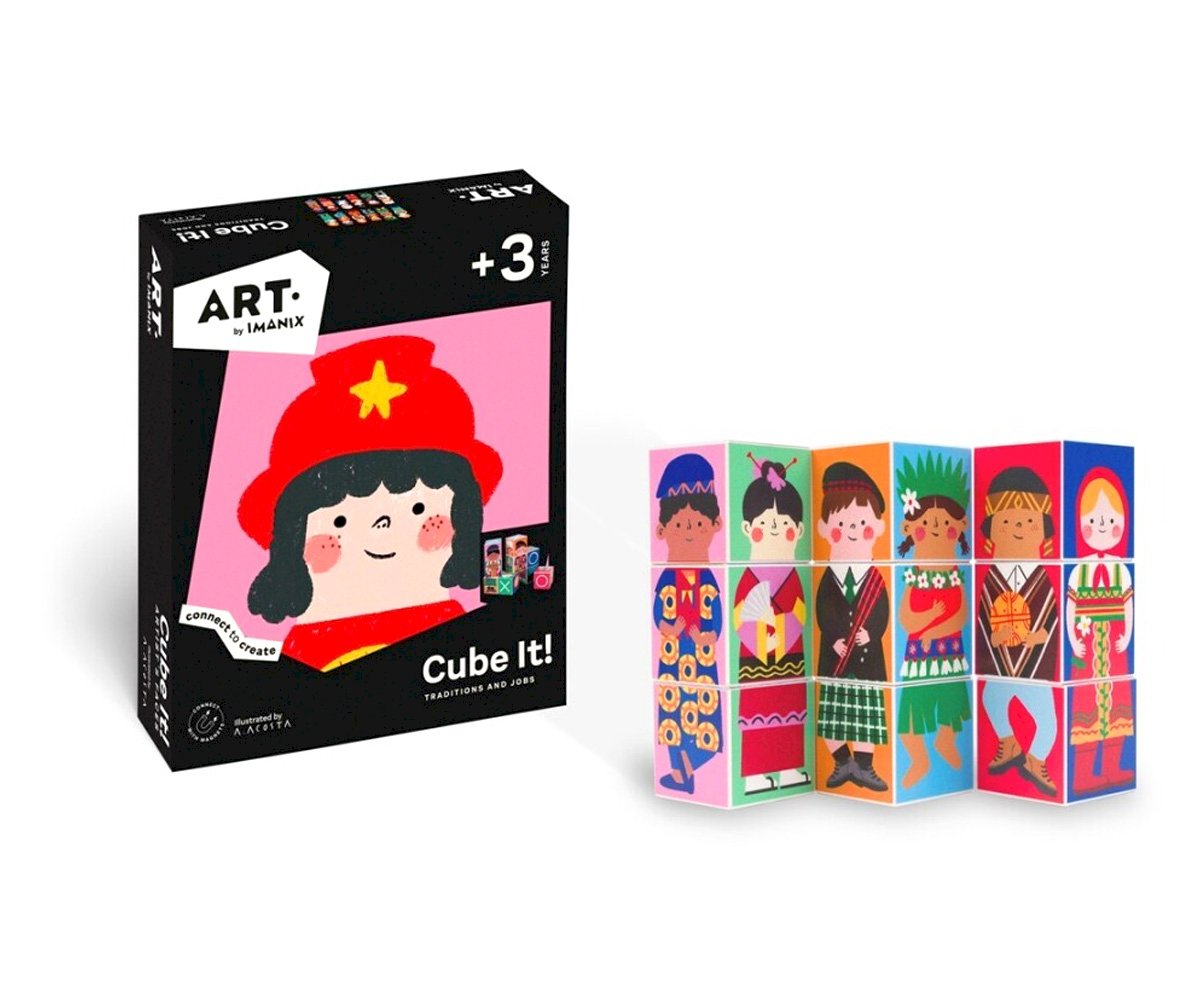 Este set, ilustrado por la artista nacional Alejandra Acosta, forma parte de nuestros juegos educativos de Imanix by Braintoys, y está compuesto por 9 cubos que te permite explorar diversas culturas y oficios, creando personajes divertidos o jugando al clásico Tres en Raya (Gato). Con sus coloridos y llamativos cubos, la diversión y el aprendizaje¡ están garantizados!