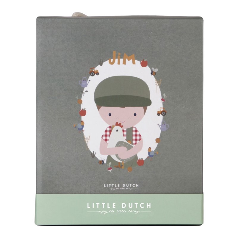 La nueva versión de Jim en su versión granjera de la colección Little Dutch. Esta vez Jim abraza a una gallina que puedes quitar y colocar de entre sus brazos. Viene presentado en una bonita caja, ideal para regalar.