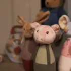 Haz rodar la suave pelota a rayas y observa cómo seis adorables animalitos caen con un delicado traqueteo. Cada bolito de terciopelo se balancea a la perfección: cerdito, gato, perro, conejo, ratón y oso esperan su turno para caer.