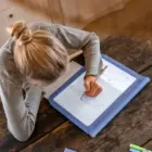 La Kidydraw Pro Azul de Kidywolf es una herramienta creativa para los niños que quieren aprender a dibujar al estilo manga trazando y creando sus propios personajes. Con su diseño portátil, tamaño A4 y sistema de doble cara, permite dibujar, calcar y experimentar con estilos de forma fácil, cómoda y creativa.