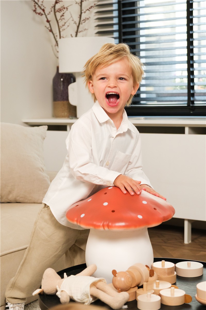 Esta lamparita ofrece una luz de noche muy suave y velada y ayudará a los y las más pequeños a conciliar el sueño sin problemas. Ya sea encendida o apagada, la lámpara seta es un objeto lleno de magia, que fascinara a las y los peques al tiempo que es un objeto decorativo tremendamente especial para su dormitorio.