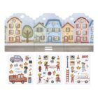 Libro de pegatinas reutilizable. Cada página contiene 3 hojas de pegatinas, crea tu propia historia inspirado en la estación de bomberos del muñeco Jim . Perfecto para jugar en casa y para llevar.