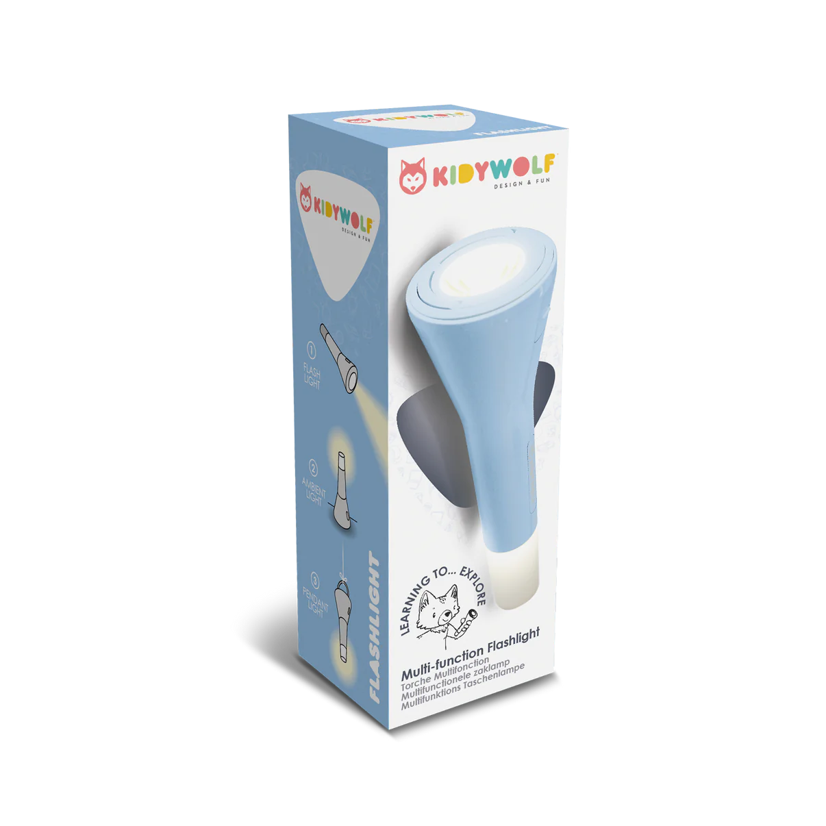 KidyFlashlight ofrece una fuente de luz reconfortante para acompañar a los niños en la oscuridad. Ideal para alejar los miedos nocturnos, brinda confort y seguridad durante la noche.