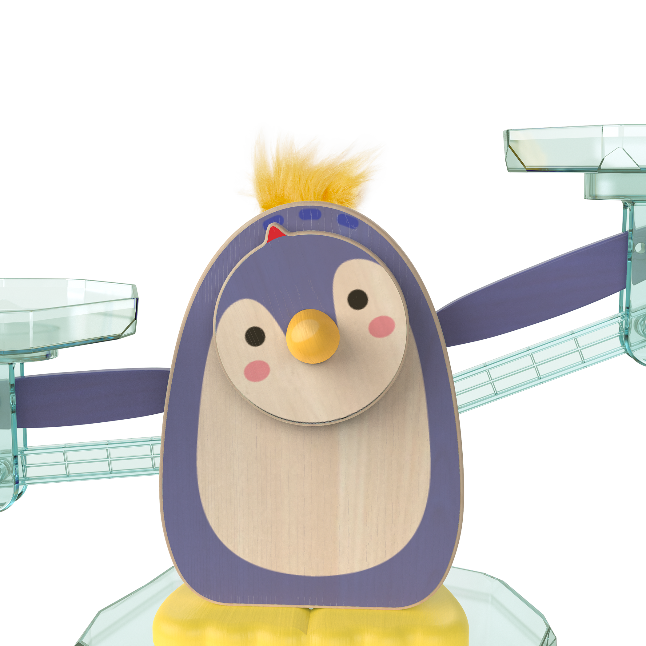 Diseñado para ocupar poco espacio y guardar fácilmente, este pingüino también esconde un sistema de almacenaje incorporado: guarda las piezas debajo y los libros en la parte trasera. Todos los materiales escritos están en inglés.