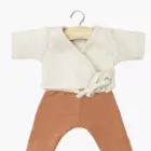 Conjunto de top cruzado de punto acanalado y legging de jersey para muñecas y bebés Minikane Gordis de 34 cm.
