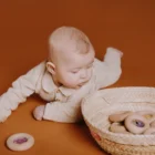 El donut sensorial kiwis le encantará a los pequeños más golosos. Es un sonajero de madera con forma de donut, ideal para que sus manos lo manipulen con comodidad. En su interior, podréis identificar figuras de frutas y verduras, que al agitarse desatan el irresistible sonido marca de la casa. Aunque apetece comérselo, está hecho de madera de haya natural, libre de tóxicos y a prueba de mordiscos.