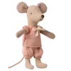 Un clásico de Maileg. Esta ratoncita está lista para jugar y duerme plácidamente en su caja de fósforos. Su ropa y ropa de cama son de telas suaves con estampados únicos y colores hermosos. Tiene imanes en las manos.