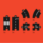 Incluye 12 piezas: 8 curvas, 2 rectas, 1 intersección y 1 rotonda.