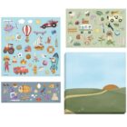Blister que contiene 4 hojas de pegatinas de temática Jim & Friends y un fondo/ escenario donde poder crear la escena. Fáciles de pegar.