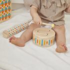 Un tambor completado con una baqueta que desarrolla la percepción espacial de los niños, los músculos de los brazos y los nervios auditivos. La baqueta tiene una cabeza de goma para suavizar el sonido.