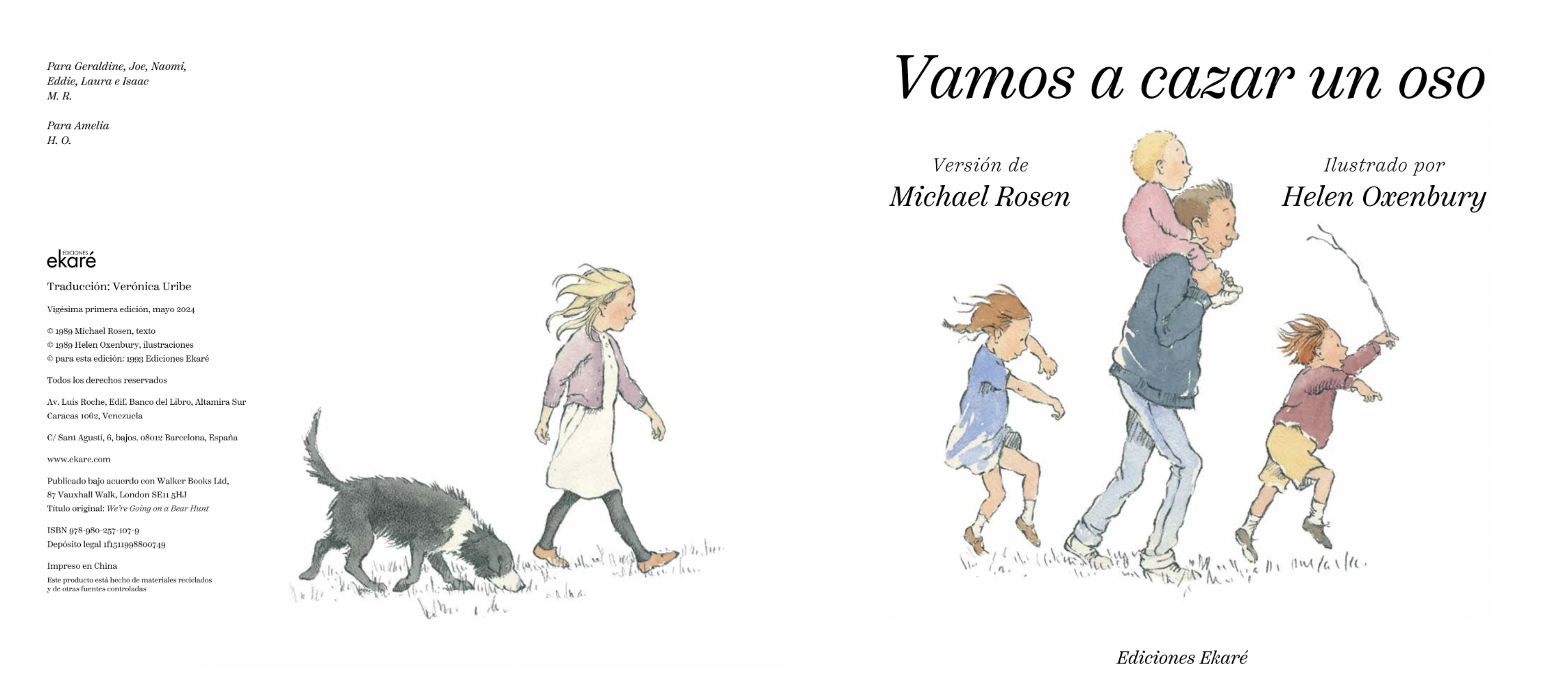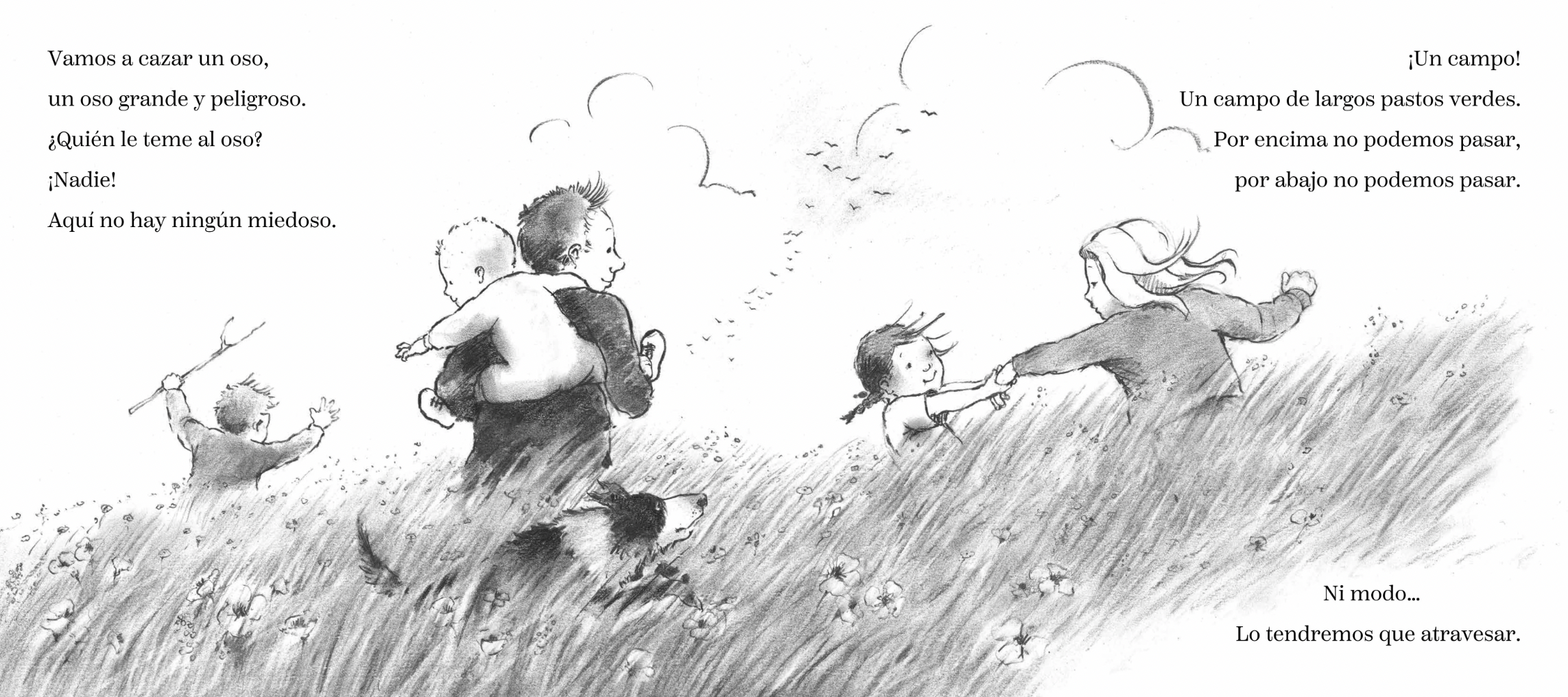 En esta versión de la canción popular inglesa, el poeta Michael Rosen y la ilustradora Helen Oxenbury, le siguen la pista a cuatro niños que salen con su padre a cazar un oso. Juntos, atraviesan un campo de altos pastos, un profundo río y un oscuro bosque. Cuando se asoman a una cueva estrecha y tenebrosa, ¿quién le tendrá miedo al oso?