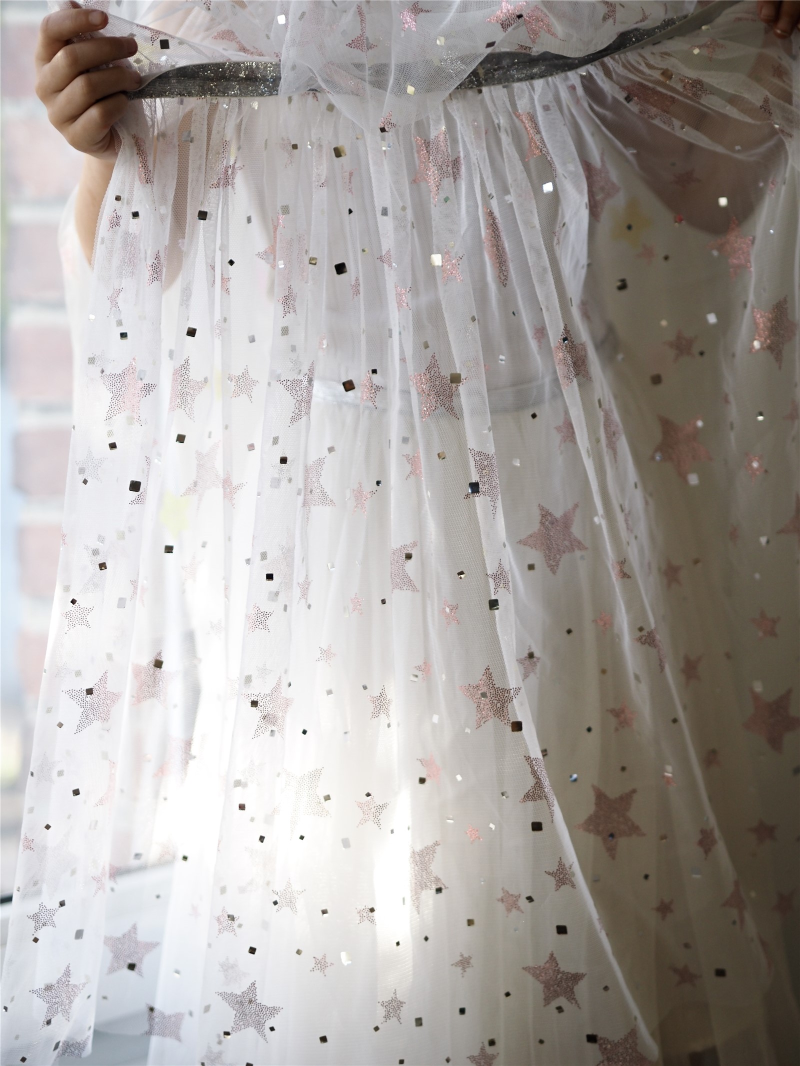 Capa Larga de Hada Con Estrellas Bordadas en Oro y Plata Ratatam